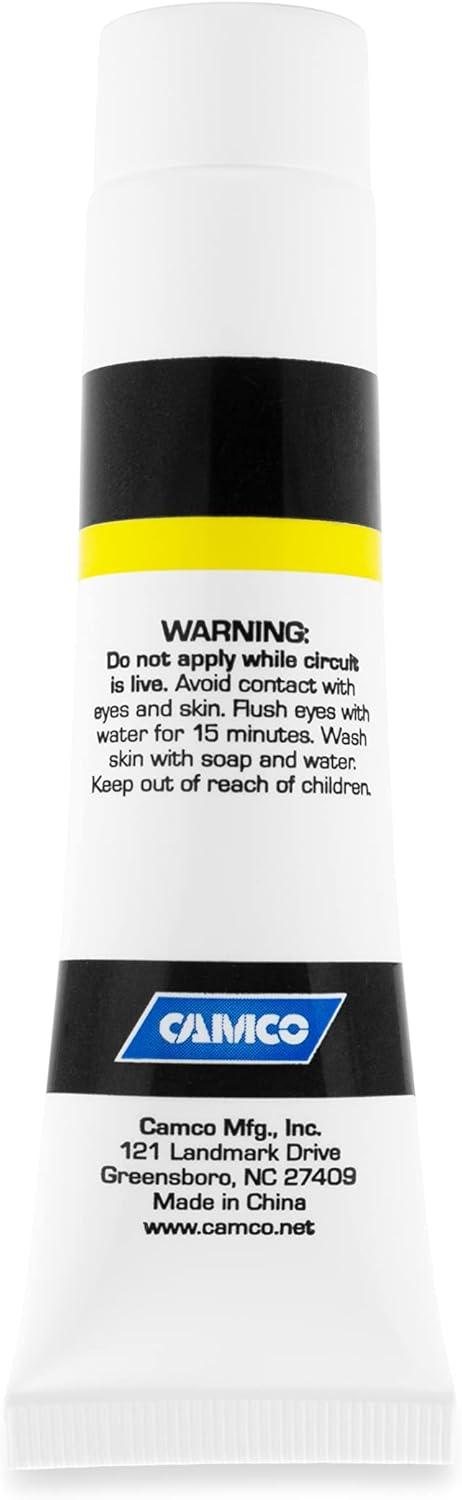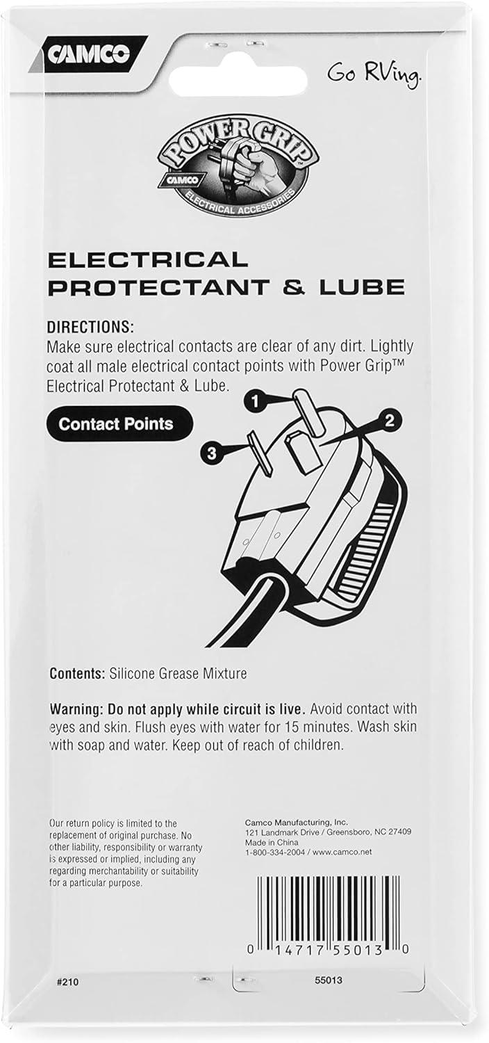 Camco RV Power Grip Electrical Protectant and Lube is used on any electrical connector to improve conductivity and protect from oxidation. It helps by making easier insertion and removal of the connectors.