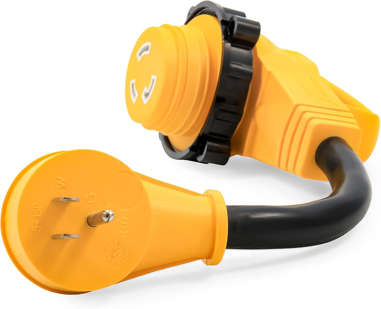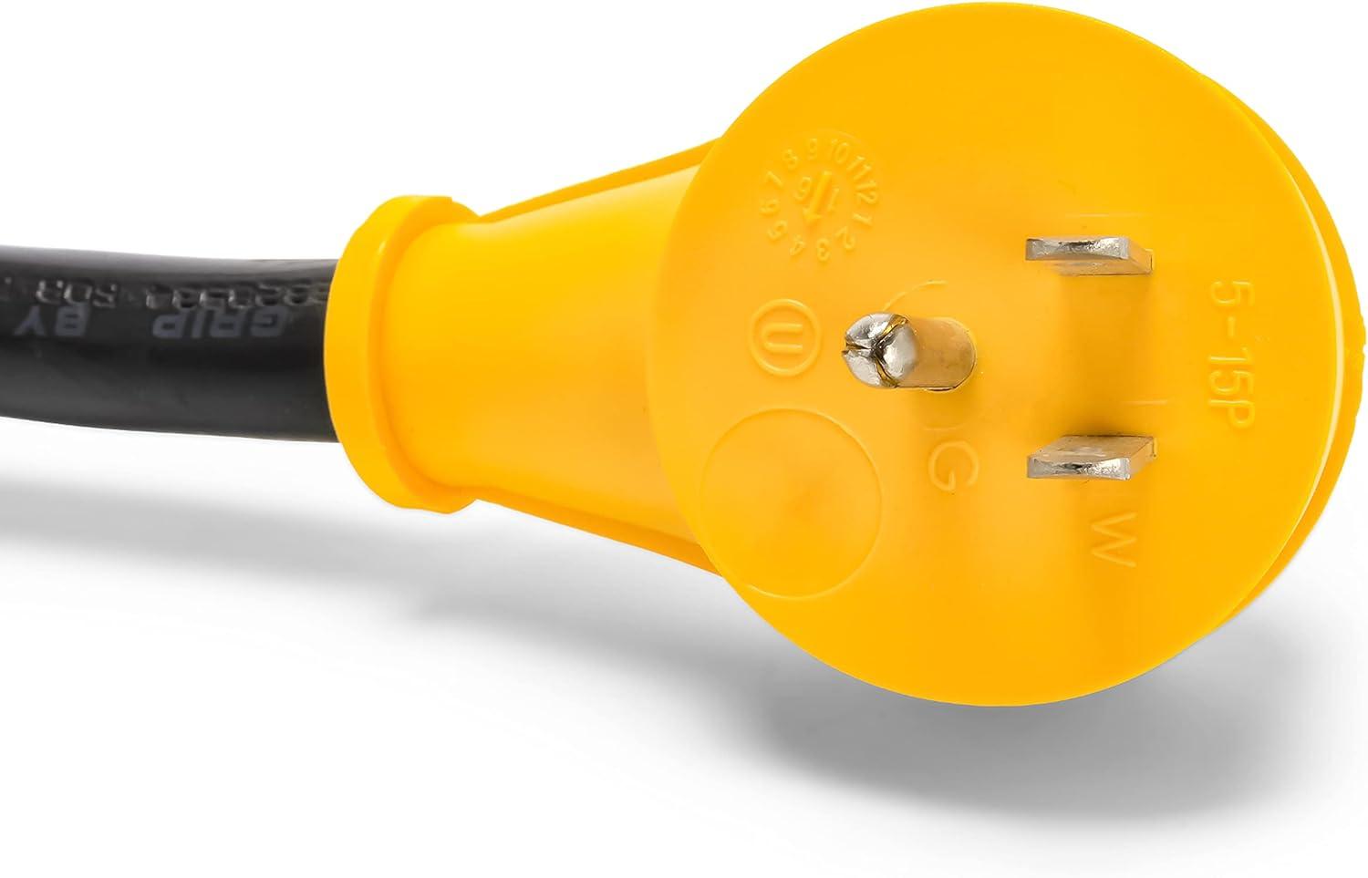 Camco 55636 Power Grip 12″ Dogbone with 90M/90F Locking Adapter – 15AM – 30AF, Yellow(One Size (Pack of 6))