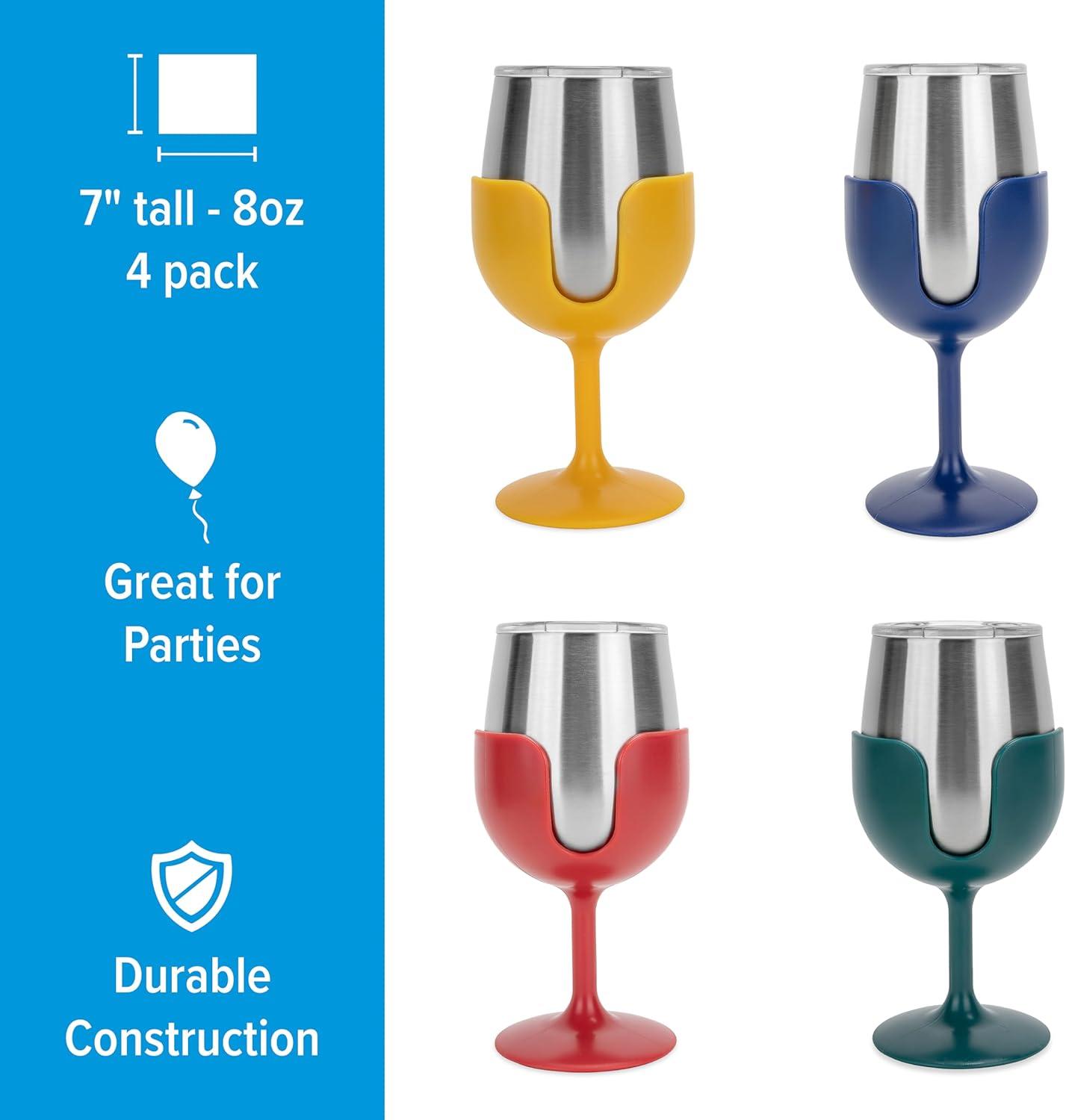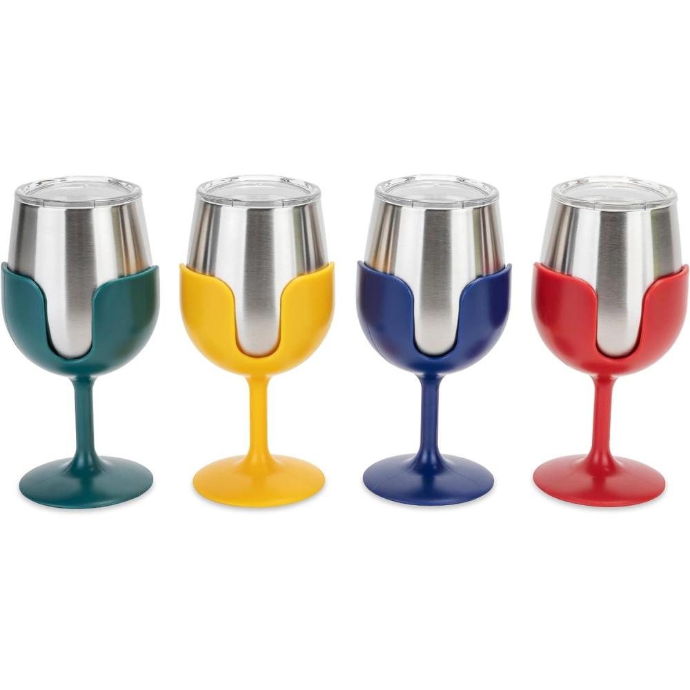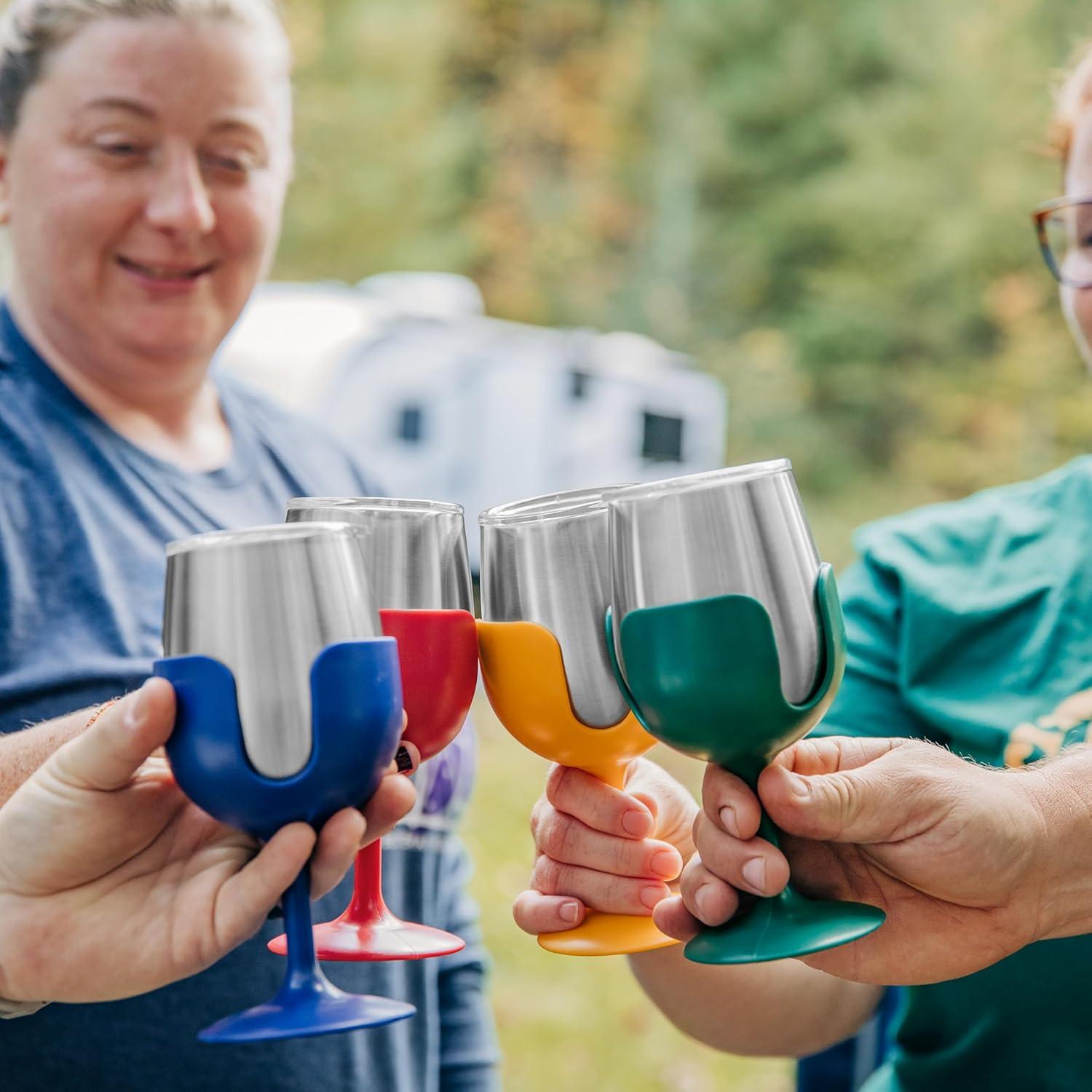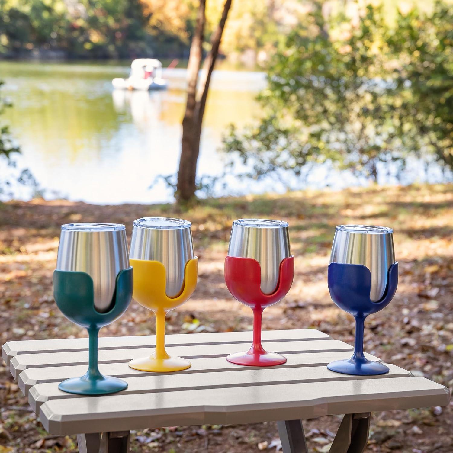 Convenient Set: Bring friends and family together with this set of (4) outdoor wine glasses that come in vintage navy, red, yellow, and green. They create a unique touch to any gathering!