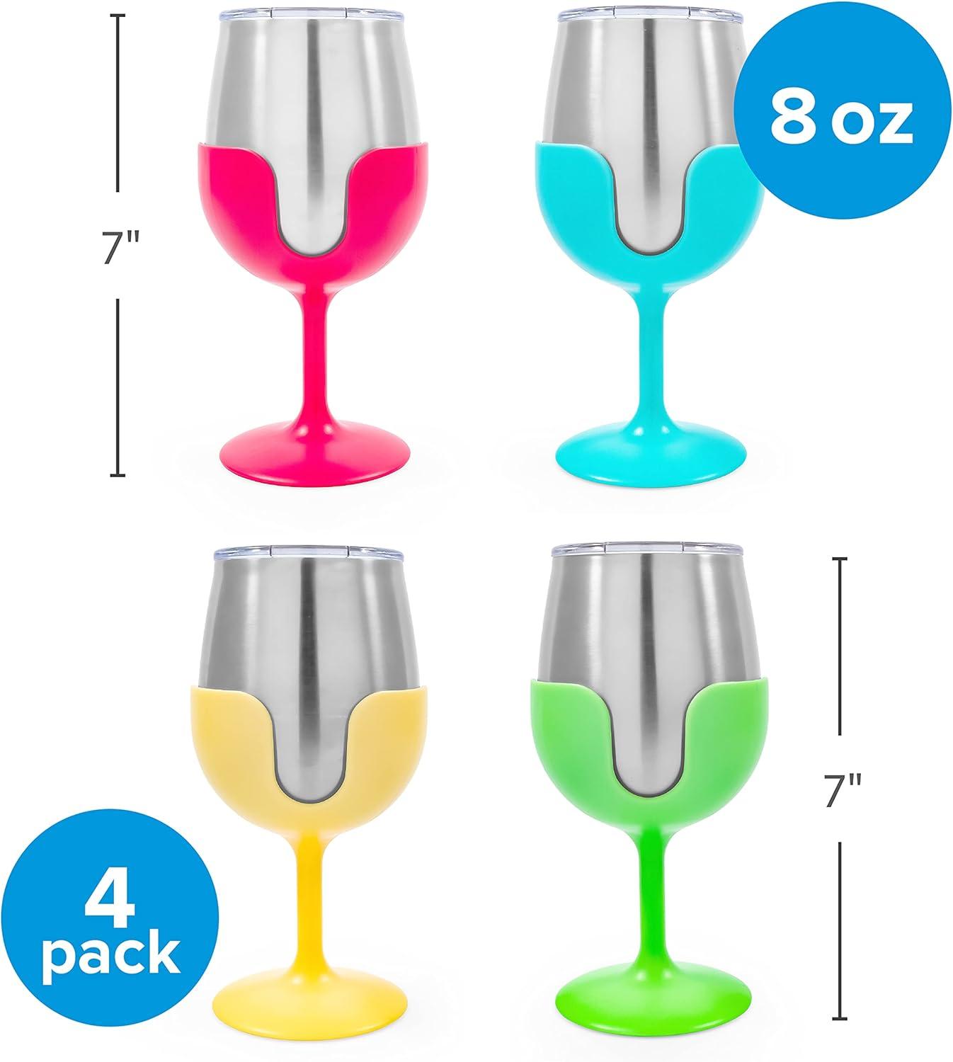 CONVENIENT SET: Bring friends and family together with this set of (4) outdoor wine glasses that come in green, yellow, blue, and pink. They create a unique touch to any gathering!