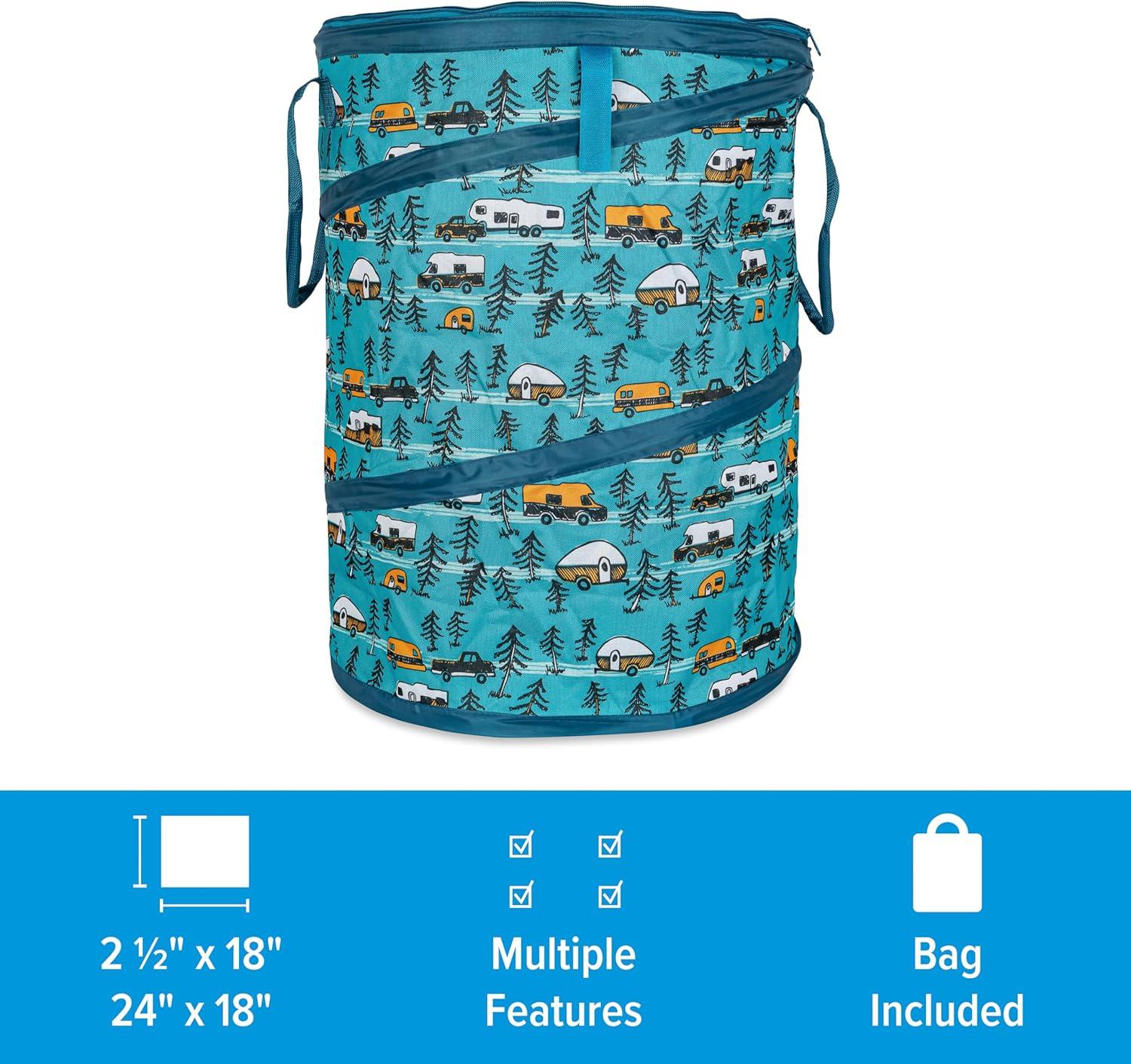 EXPLORE NATURE WITHOUT CLUTTER: Explore the outdoors without having to worry about messy items or trash! Camco's Pop-Up Container works great as an outdoor garbage can, pop up laundry basket, RV trash can, boat trash can, or yard waste container