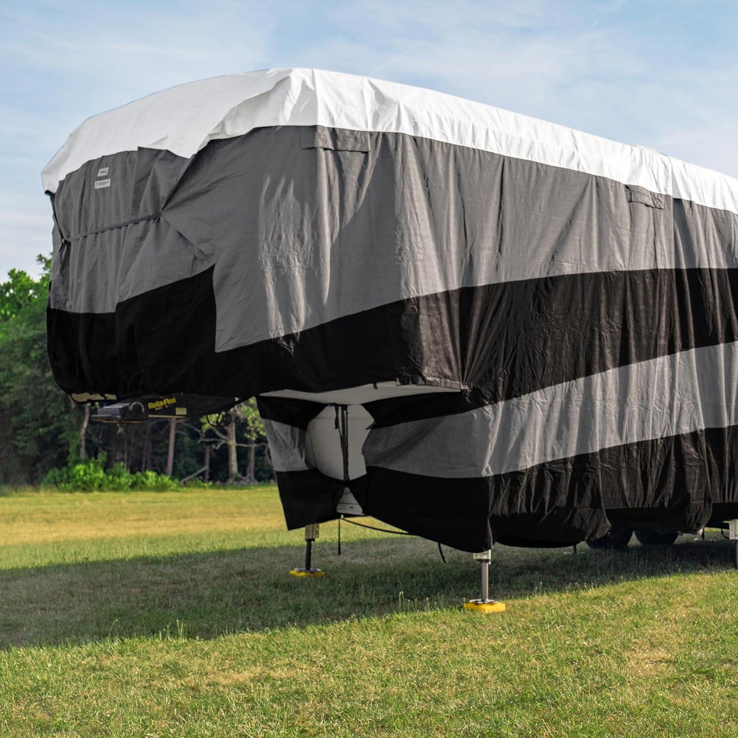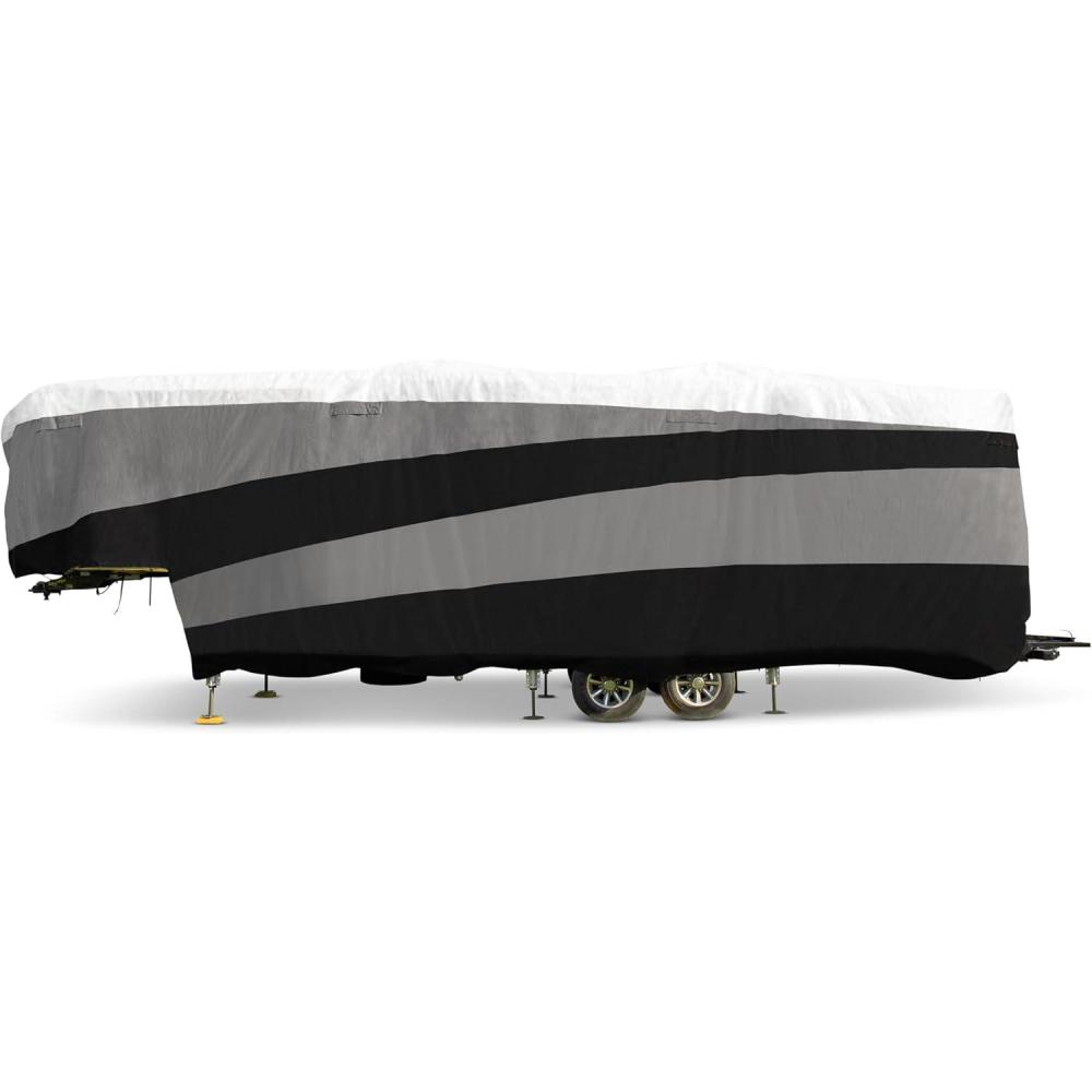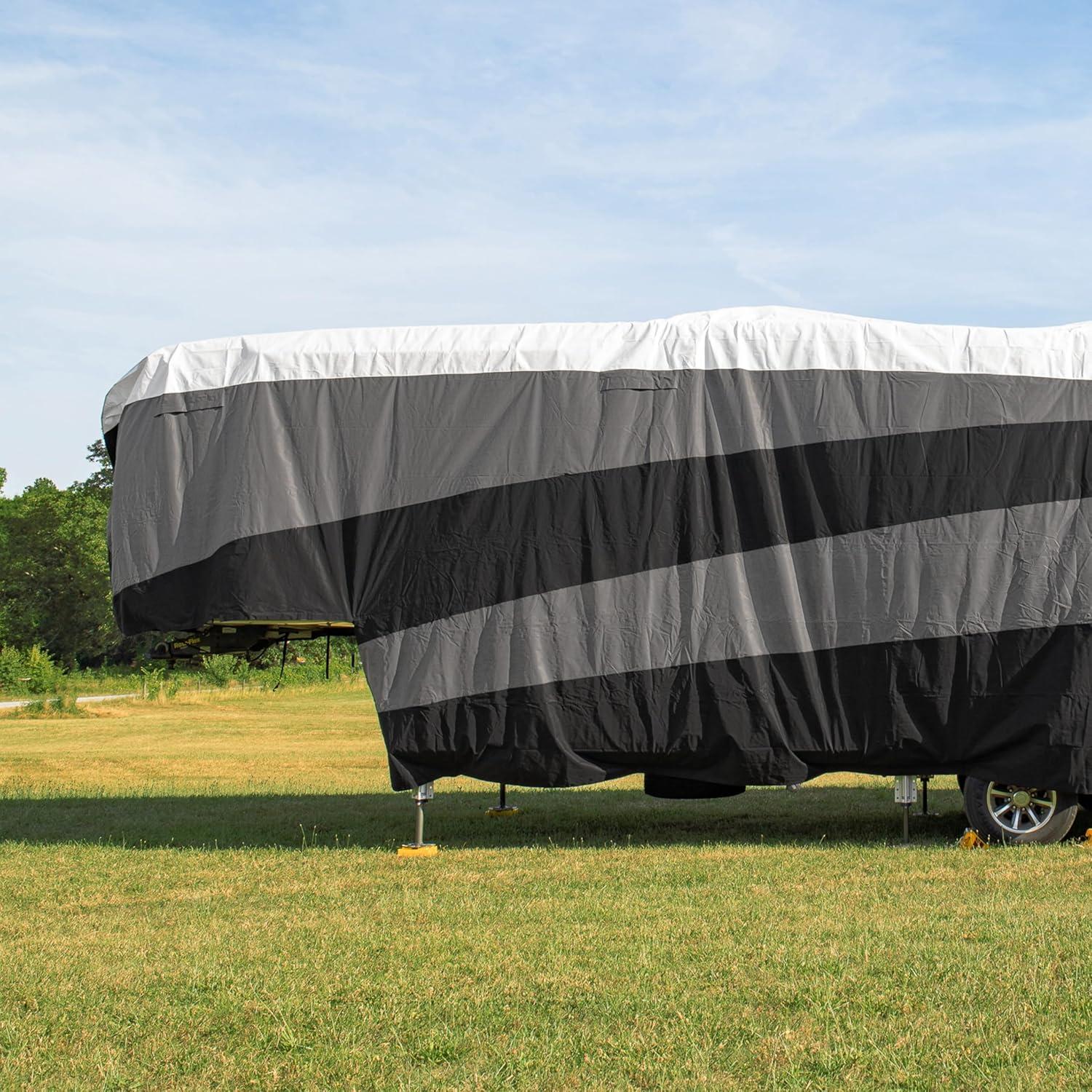 Full Protection from the Elements: Made with two-layer non-woven polymer on the sides, front, and back, and a three-layer DuPont Tyvek top, this RV cover shields your camper from sun, rain, snow, and sleet for lasting protection.